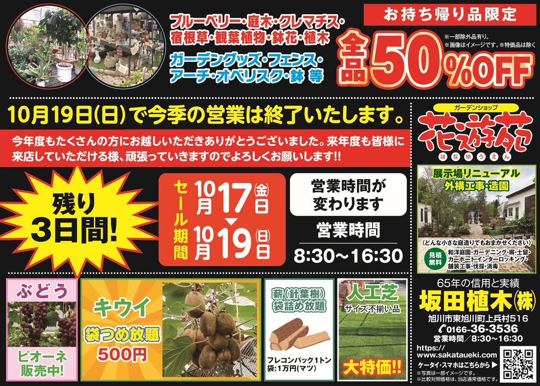 TEL 0166-36-3536 FAX0166-36-3143 ガーデンセンター2025年の営業は 10月19日(日)で終了いたします。また 2026年4月より休まず営業いたします。どうぞよろしくお願いいたします。